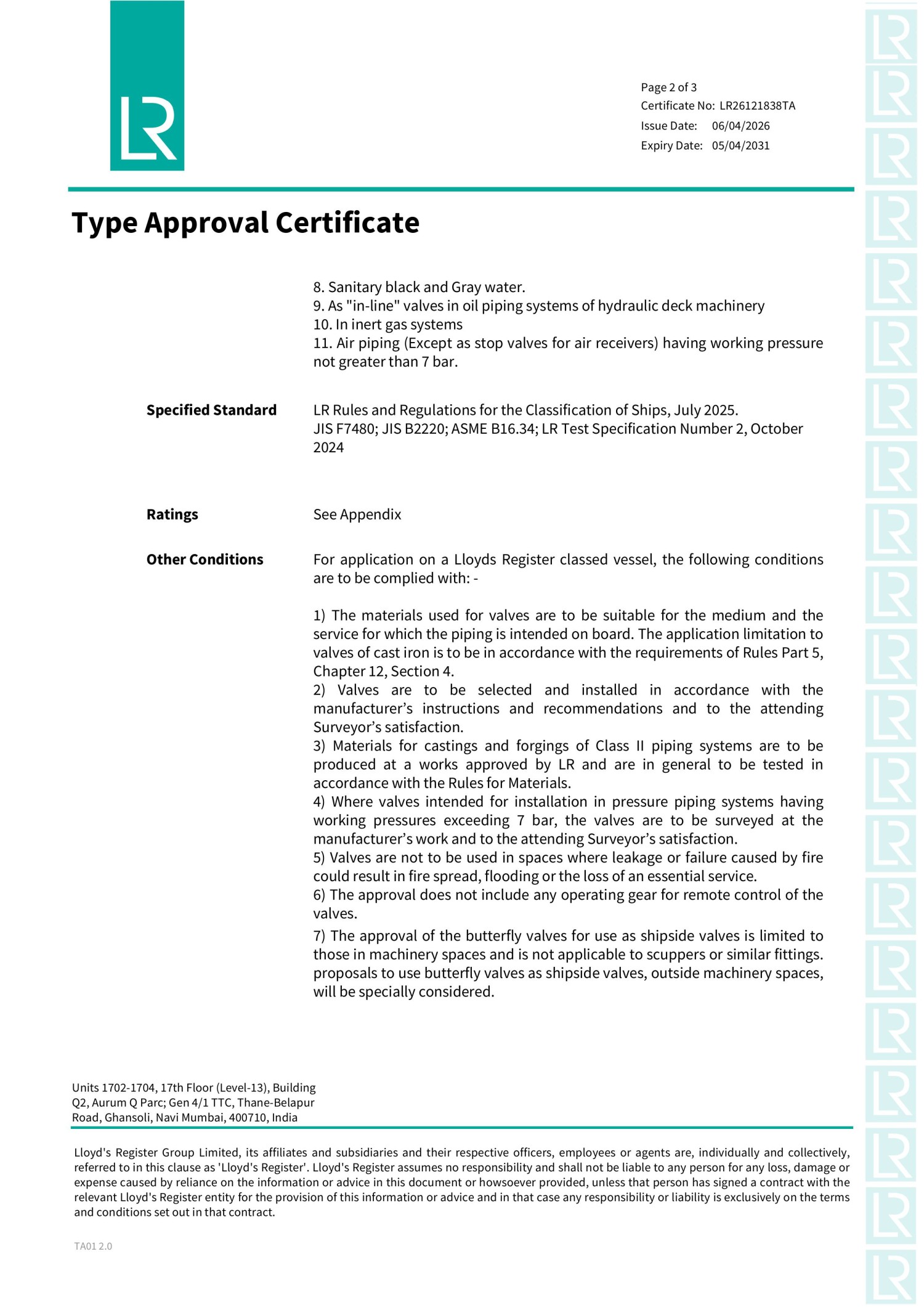 Type Approval Certificate_LR26121838TA_SINSUNG VALVE
